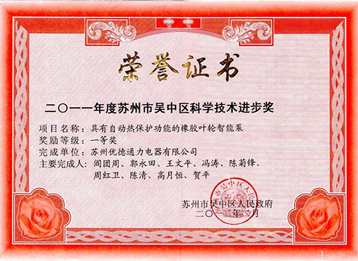 荣誉证书-—2011-年度苏州市吴中区科学技术进步奖